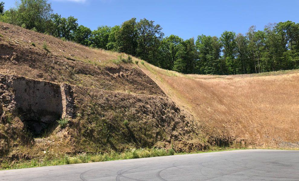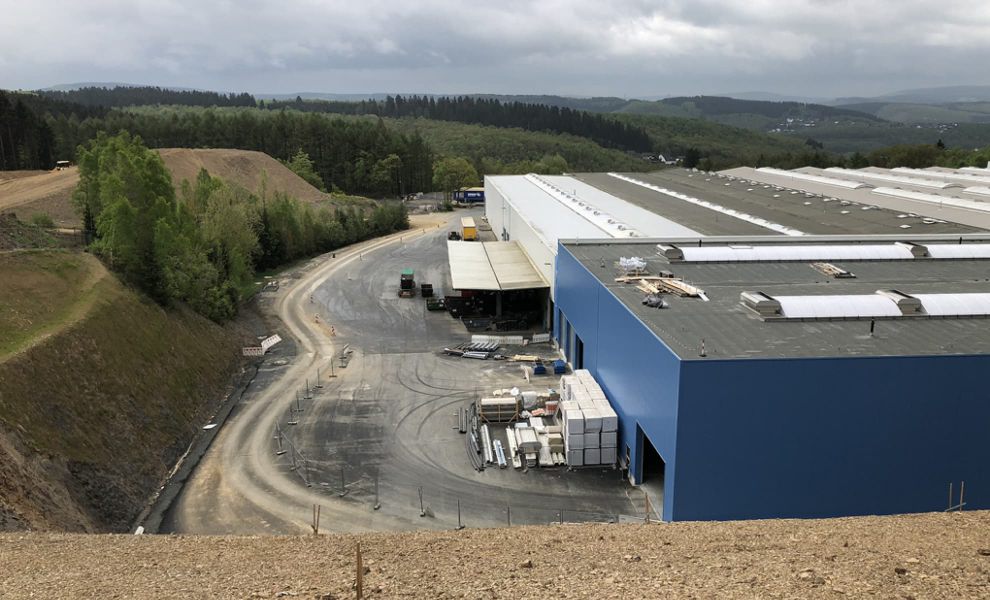 Die Baumaßnahme des Gebäudes erforderte den Abtrag eines großen Teils des unmittelbar angrenzenden Hanges mit einem Gesamtvolumen von ca. 200.000 m3. Die Einbindung unterschiedlichster Fachkompetenzen für den Erdabtrag, den Erdauftrag, teilweise auf Haubergsgelände, die Wiederverwertung, und die Ausbildung des Hanges wurde auf dem ehemaligen Bergbaugelände unabdingbar. Aufgrund von lokalen geologischen Störungen stellte sich die Sicherstellung der Standfestigkeit des Hanges zudem als besondere Herausforderung dar.