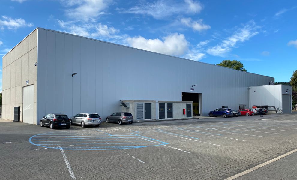 Innerhalb des gewachsenen Werksgeländes der Fa. Heinrich Georg GmbH & Co. KG wurde der Anbau einer Produktionshalle realisiert, um Kapazitäten für die Erweiterung des Maschinenparks zu schaffen. Um eine durchgängige Produktionsfläche mit einer aus dem Bestand verlängerten und durchgängigen Kranbahn zu gewährleisten, musste unter anderem die straßenseitige Giebelwand aus Stahlbetonfertigteilen zurück gebaut werden.