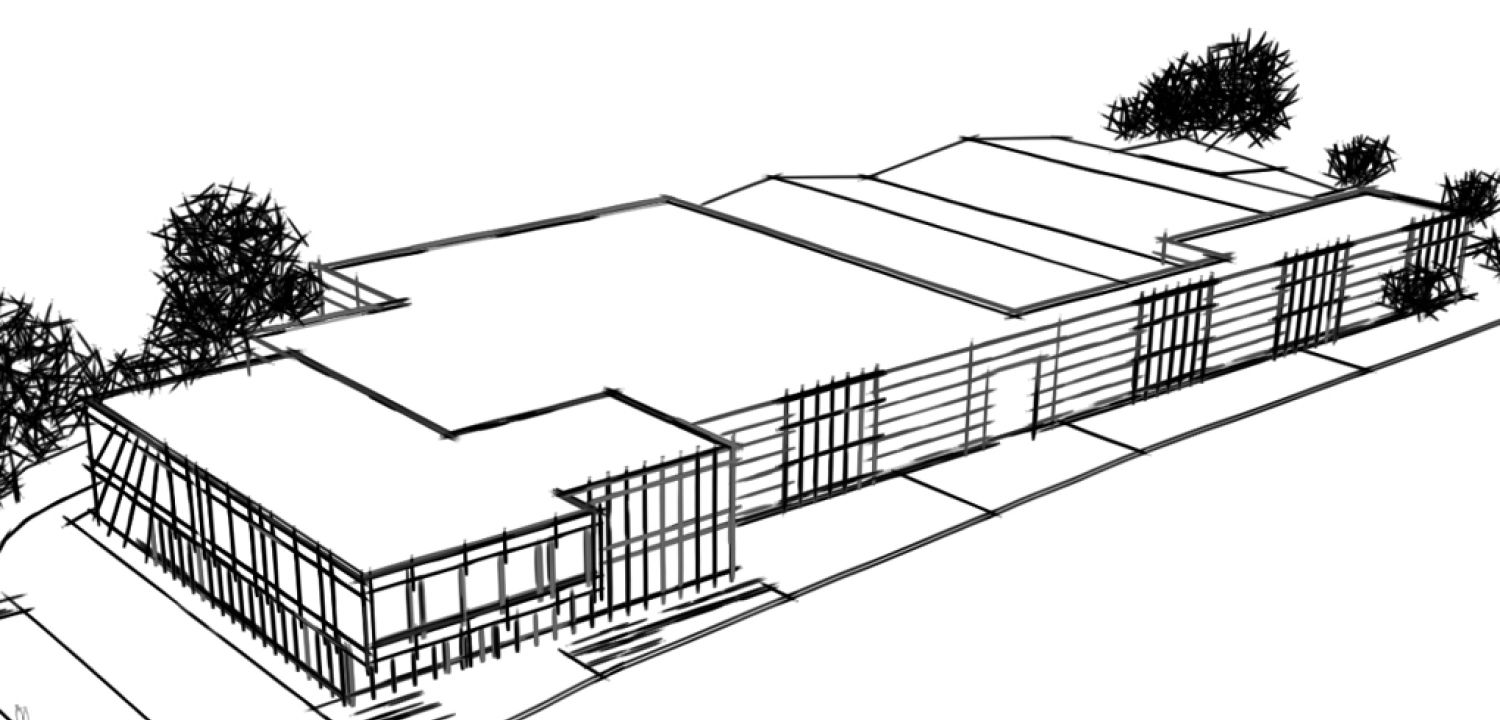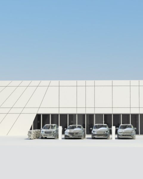 Die Aufgabe des Wettbewerbs in einem Gewerbegebiet in einer Kleinstadt im Sauerland bestand grundsätzlich in der Zusammenlegung von zwei vorhandenen Betriebsstandorten sowie der Integration und Aufwertung des Bestandgebäudes. Zur Ausarbeitung gehörten zwei Varianten: Einerseits die Einbeziehung des vorhandenen Büro- und Sozialbereichs in Verbindung mit einer Aufstockung, anderseits den Rückbau und Neubau des Bürotraktes. Hier zu sehen ist die zweite Variante. Die vorhandene Produktions- und Lagerfläche wurde um ca. 1.600qm erweitert. Zur Straßenseite hin wurde das Baufeld maximalausgenutzt und die Fassade des Neubaus an der kompletten Front in einer klaren Linie durchgezogen.