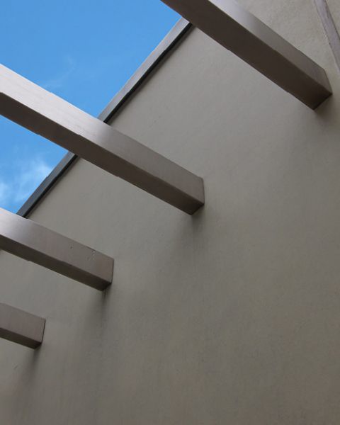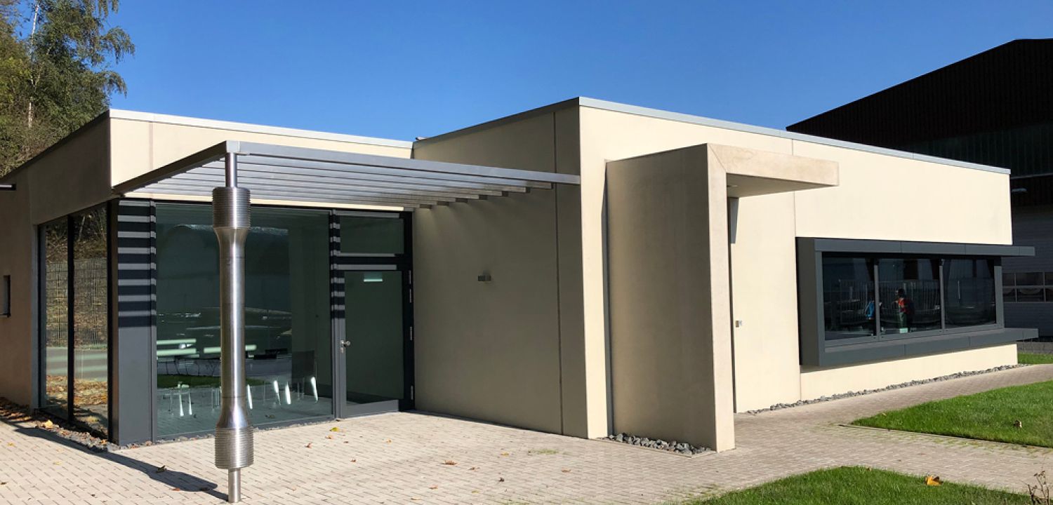 Auf Wunsch des Bauherrn wurde im Bereich der Pergola ein überdimensionales Probestück aus dem Bereich der Materialprüfung / Qualitätssicherung integriert.