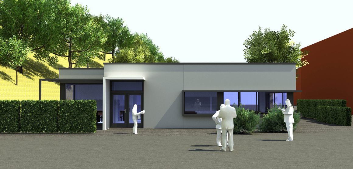 Auf dem Werksgelände der BGH Edelstahl Siegen GmbH entstand auf einer bis dato ungenutzten Restfläche zwischen Werksumfahrt, Bahngleisen und Straßenböschung eine Betriebskantine. Aufgrund des sehr begrenzten Platzes und des ungleichmäßigen Zuschnittes der Baufläche nimmt das Gebäude direkt Bezug auf die umgebenden Randbedingungen.