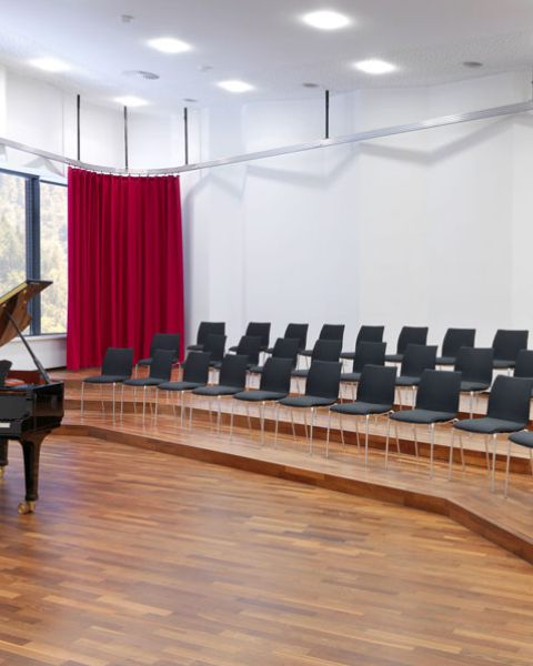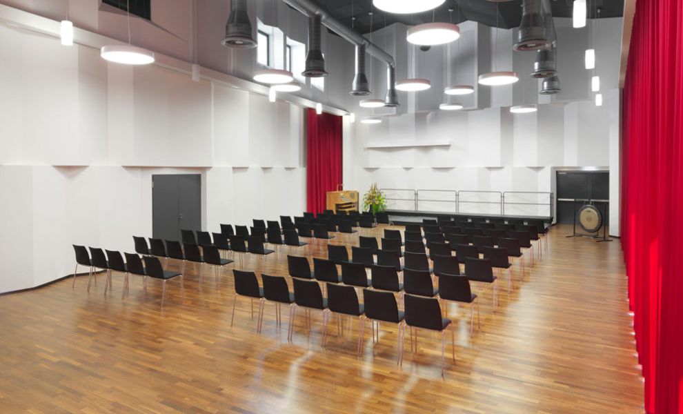 Die bestehende Aula wurde im Frühjahr 2013 abgerissen und das Baufeld hergerichtet. Im Neubau entstanden neben drei großen Musikräumen (Kammermusiksaal, Chorsaal und Konzertsaal) diverse moderne Proberäume sowie ein Tonregieraum. Die Räumlichkeiten sind speziell auf die Bedürfnisse von Musikvereinen, Chören sowie Tanz- und Theaterensembles ausgerichtet.