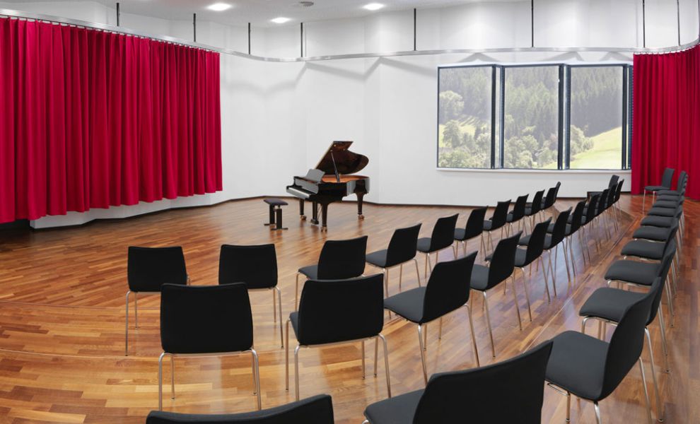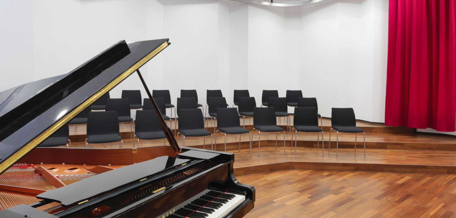 Neben einer Aufstockung des Bestandes an Instrumenten wurden die Räumlichkeiten unter besonderen Akustik- und Schallschutzaspekten ausgestattet. Die beiden großen Säle sowie zwei der Probenräume wurden in einer Raum-in-Raum-Bauweise errichtet. Die innere Schale ist bauakustisch komplett vom Massivbau entkoppelt. Innerhalb der Raum-in-Raum-Bauweise wurden dann die raumakustischen Elemente in einem ausgewogenen Verhältnis von Reflexion, Diffusion und Absorption errichtet.