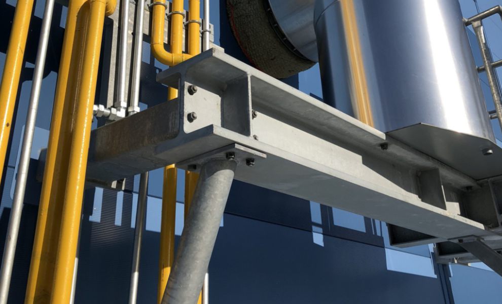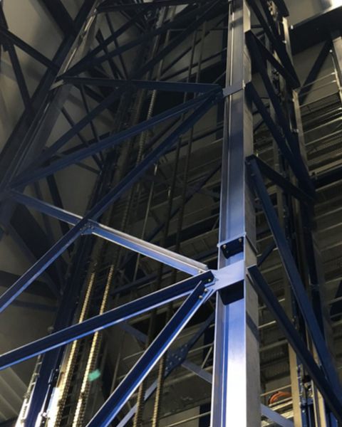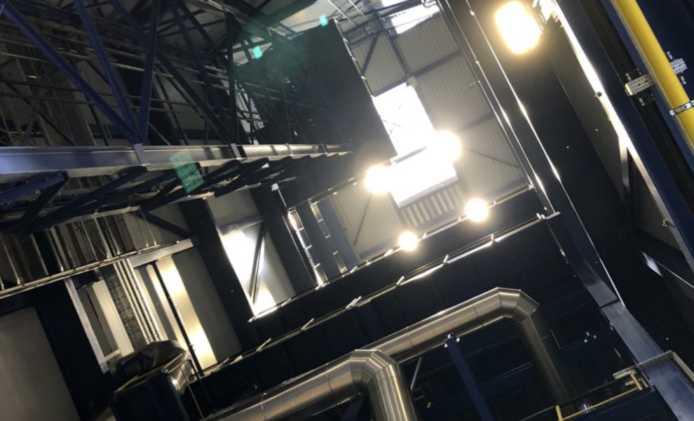 Im Inneren des Ofenturms befindet sich unabhängig und losgelöst von der Gebäudehülle der komplexe Stahlbau für das Stützgerüst des Ofens. Die enormen Lasten der Konstruktion und der Anlagentechnik wurden mit Hilfe einer Spezialgründung bis auf den tragfähigen Baugrund geführt.