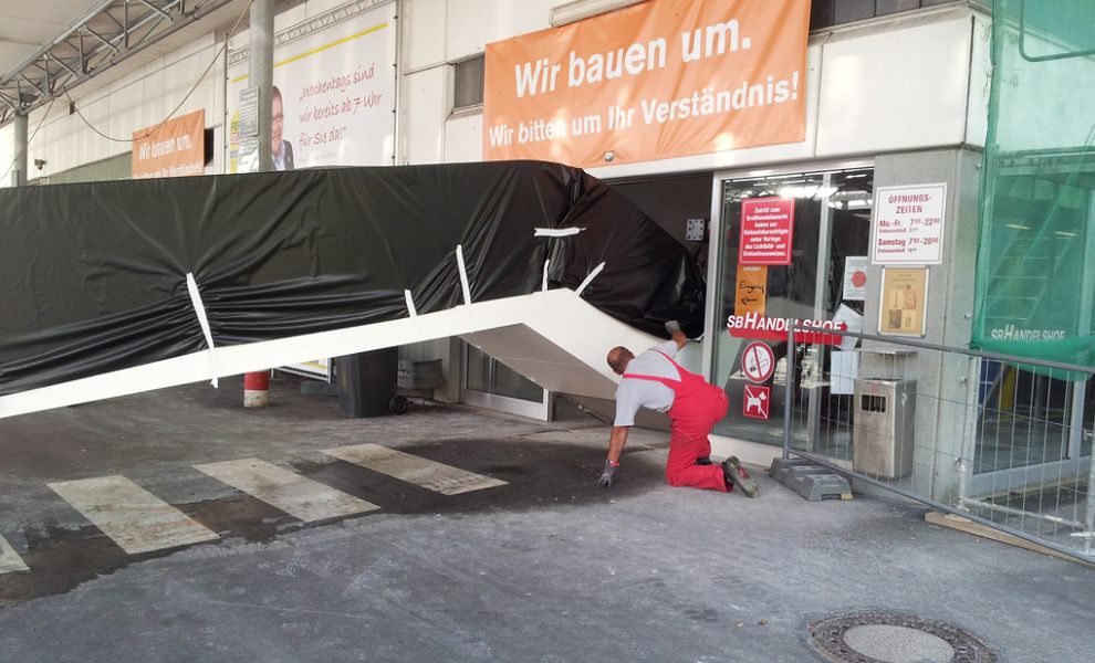 Neben dem Verkaufsraum umfasste die Sanierung auch die Lager- und Sozialräume sowie eine brandschutztechnische Aufwertung des Gesamtkomplexes inkl. Neubaus eines Löschwasserbehälters.
